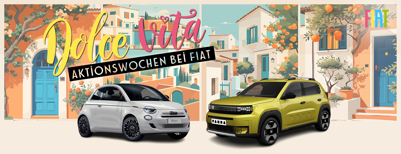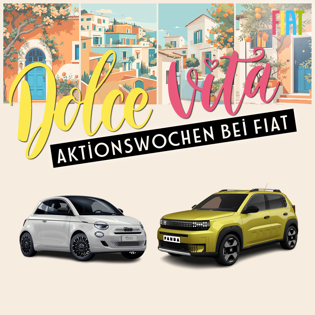 Unverbindliche Kilometerleasingangebote (Bonität vorausgesetzt) für Privatkunden der Stellantis Bank SA Niederlassung Deutschland, Siemensstraße 10, 63263 Neu-Isenburg. Die Überführungskosten sind in den Leasingraten nicht enthalten und sind gesondert an den anbietenden Händler zu entrichten. Beispielfoto zeigt Fahrzeug der jeweiligen Baureihe, die Ausstattungsmerkmale des abgebildeten Fahrzeugs sind nicht Bestandteil des Angebots. Nur für vorkonfigurierte Bestandsfahrzeuge bei teilnehmenden Fiat Partnern. Mehr- und Minderkilometer (Freigrenze 2.500 km) sowie eventuell vorhandene Schäden werden nach Vertragsende gesondert abgerechnet.